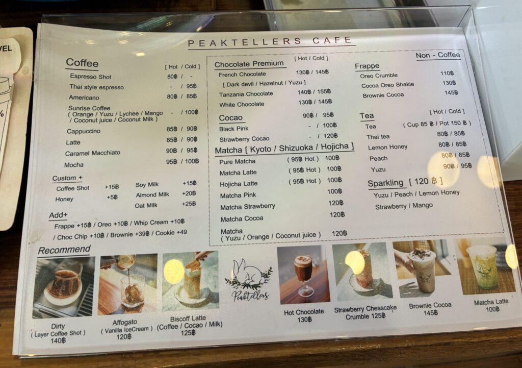 コーヒーにもこだわっているようで、ドリップして淹れてくれるスペシャリティコーヒーには、タイ(チェンライ産)、エチオピア、ブラジル、コロンビアの豆があります。