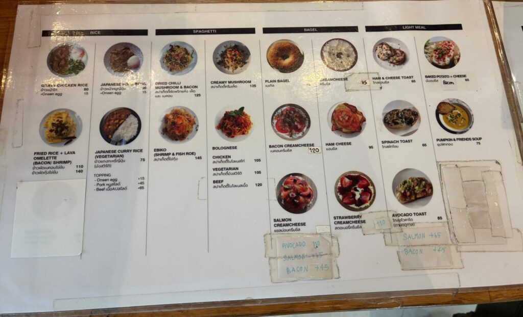 プレーン(45B)、クリームチーズ(75B)、ストロベリークリームチーズ(110B)などがあります。