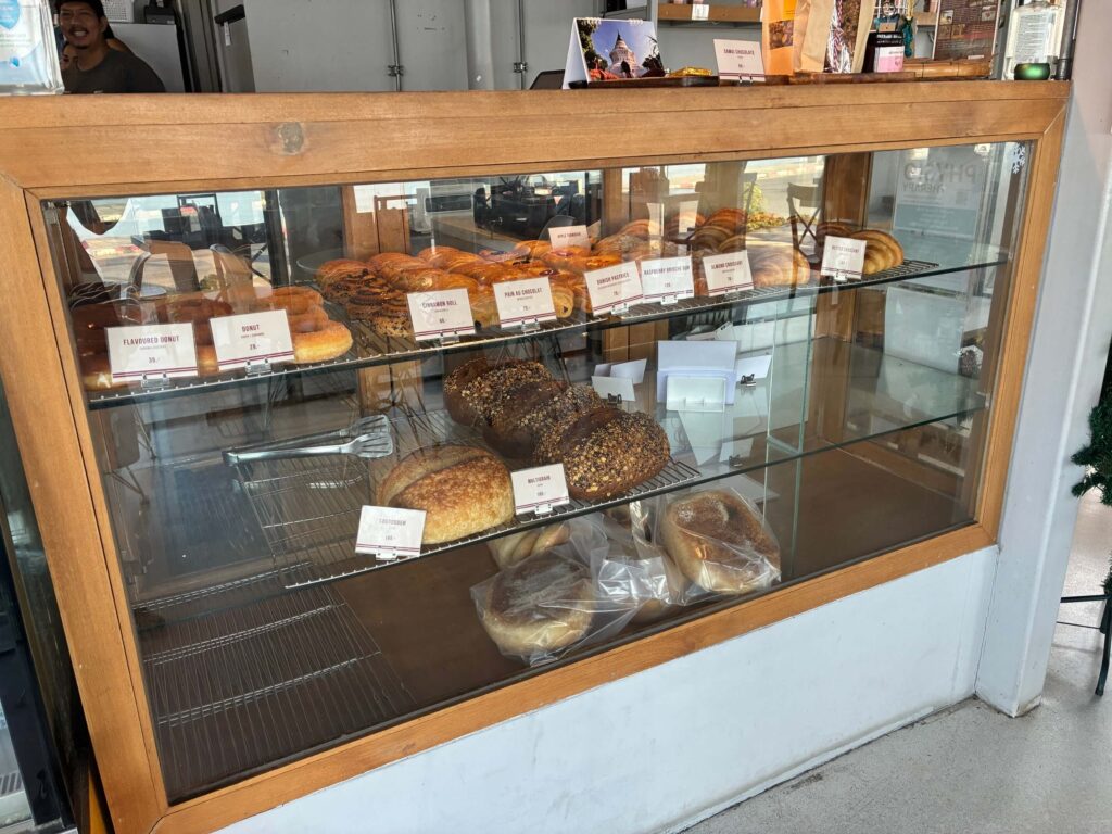 自家製ベーカリーを食べてみたかったので、ライ麦やオーツ麦が入ったマルチグレインパン(180B)を買って帰りました。