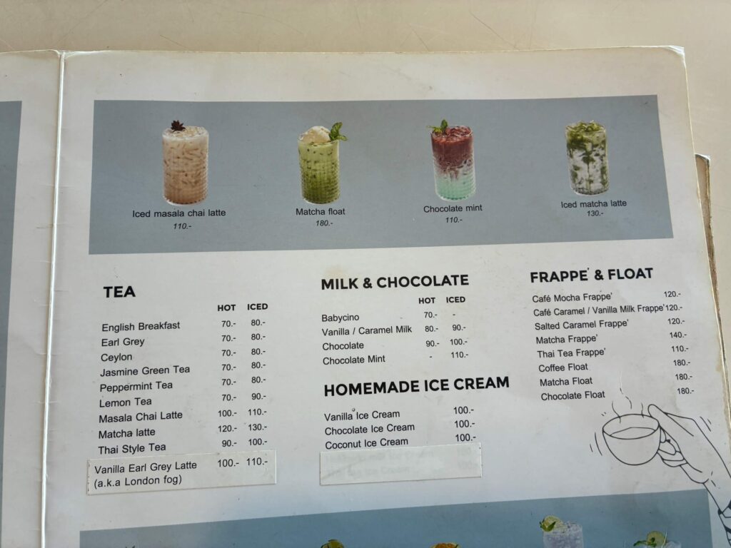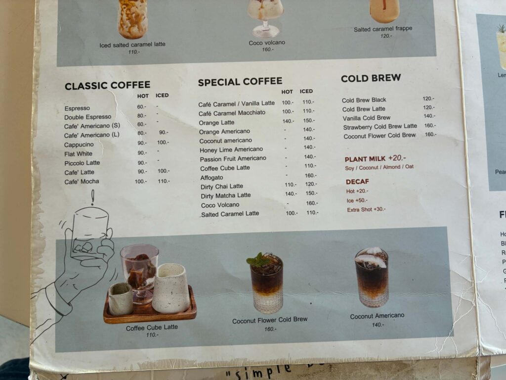 Flat WhiteやPicolo Latteはタイのカフェではあまり見かけないので、外国人が多いサムイ島ならではだなぁと思いました。