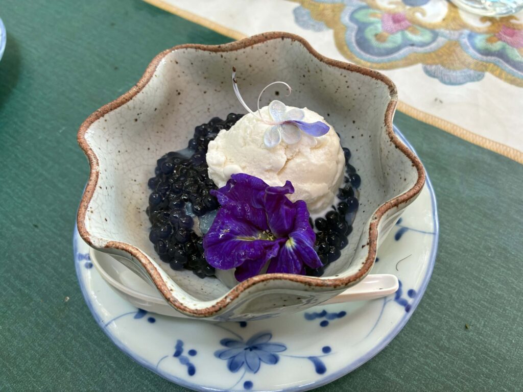サゴはバタフライピーで色付けているので、紫色をしています。
