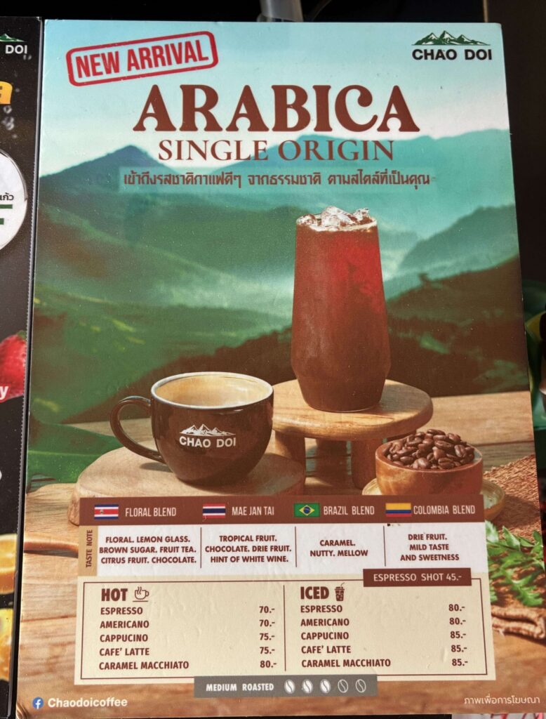 バンコクだけでなく、チェンマイ、パタヤ、プーケット、ハートヤイなど主要な都市では、Chao Doiカフェをすぐに見つけることができます。